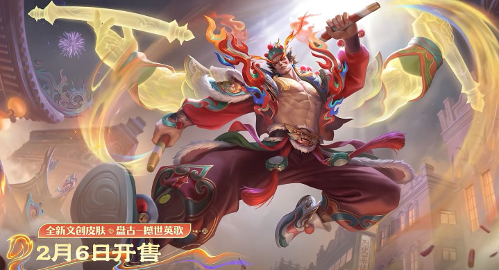 2月6日,盘古的全新史诗皮肤【撼世英歌】将会正式上架商城,由于是和广东普宁英歌非遗的联动,皮肤的文化属性感极强,局内建模、特效、音频非常震撼,目前490点券的超值礼包非常划算。