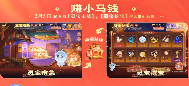 另外,本次还上线了一个全新的灵宝挖宝玩法,获取的宝物也可以换取小马钱,之后可在小马商店进行奖励兑换。