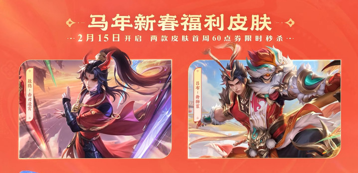 2月15日将会上线2款60点券限时秒杀勇者皮肤,分别为【敖隐赤刃凌霄】和【吕布舞狮寰】,敖隐建议直接入手,毕竟是首款皮肤,10点攻击属性太重要了。