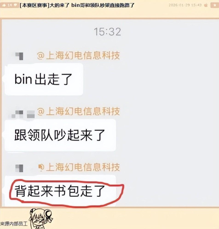 最初,这件事的本质其实并不复杂——选手与领队发生矛盾,情绪上头,做出了不成熟的选择,随后父母介入,事情收场,Bin也回归并道歉,从职业角度看,这是一段需要反思、但早该翻篇的插曲。